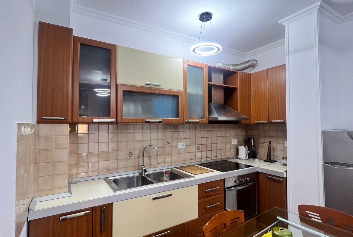 Ky apartament 1+1 ndodhet në Myslym Shyr, pranë Gjykatës, një nga zonat më të preferuara dhe më të gjalla të Tiranës. Pozicionohet në katin e 8-të të një pallati dhe ka sipërfaqe prej 68 m². Ambientet janë të mobiluara dhe të organizuara me korridor shpërndarës, sallon ndenjeje të ndriçuar, ambient gatimi, një dhomë gjumi, një tualet dhe një ballkon që shton komoditetin e përditshëm. Zona ofron akses të menjëhershëm në transport publik, institucione dhe shërbime të ndryshme, duke e bërë këtë apartament një zgjedhje ideale për ata që kërkojnë jetesë urbane dhe praktike në zemër të kryeqytetit. Çmimi i qirasë është 600 € në muaj.